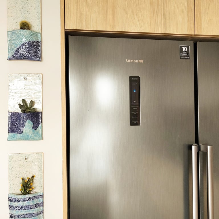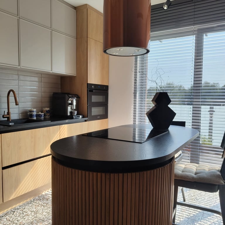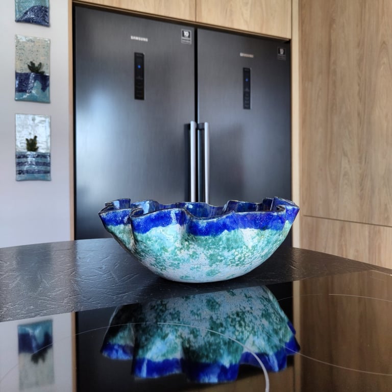 Ceramiczna misa i dekoracje ścienne i wazon to autorskie dzieła architektki